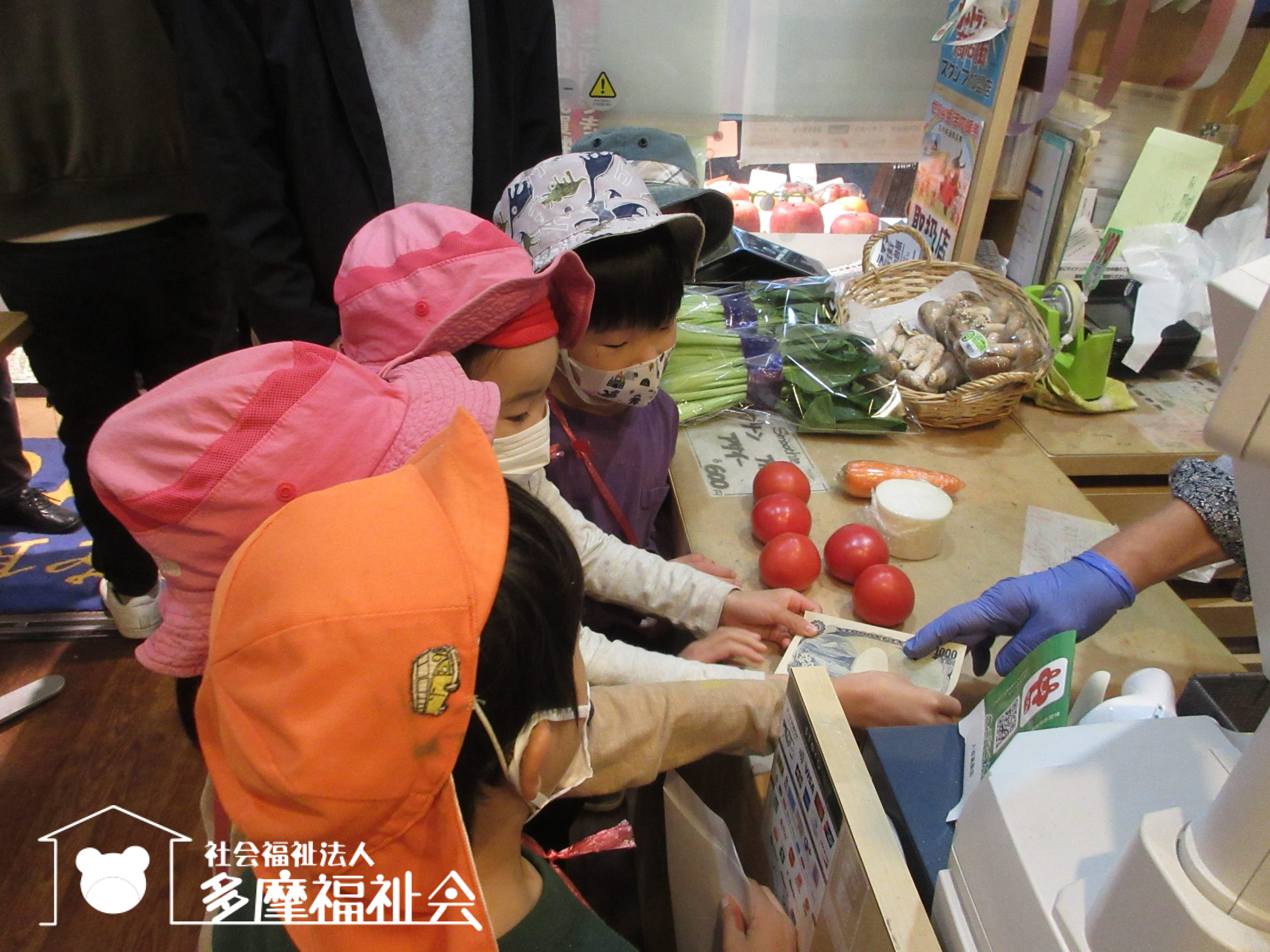 買い物へ行った帰りに、りすのお友達(2歳児)に会いました。りすさんも野菜に興味津々。