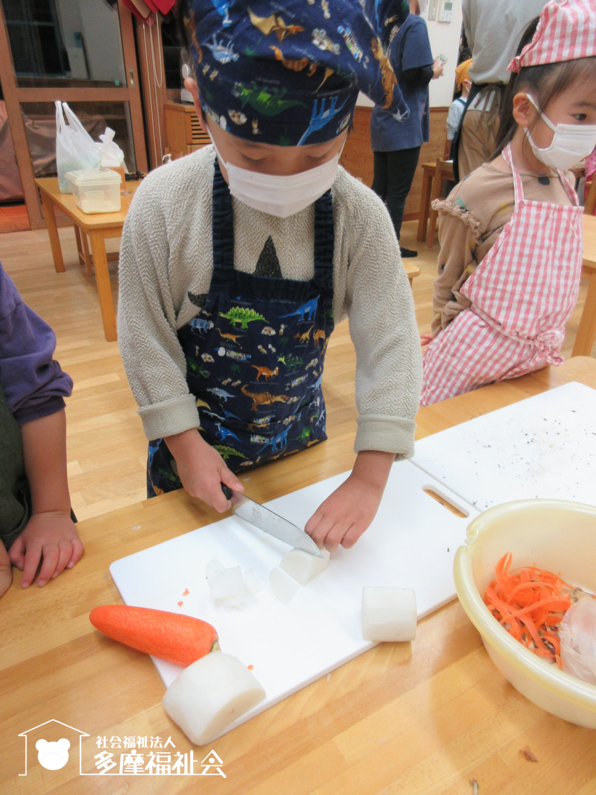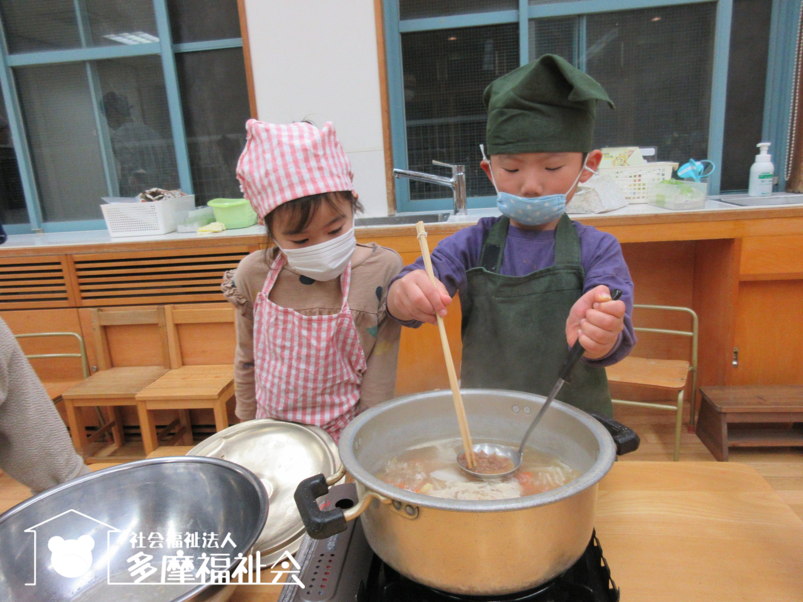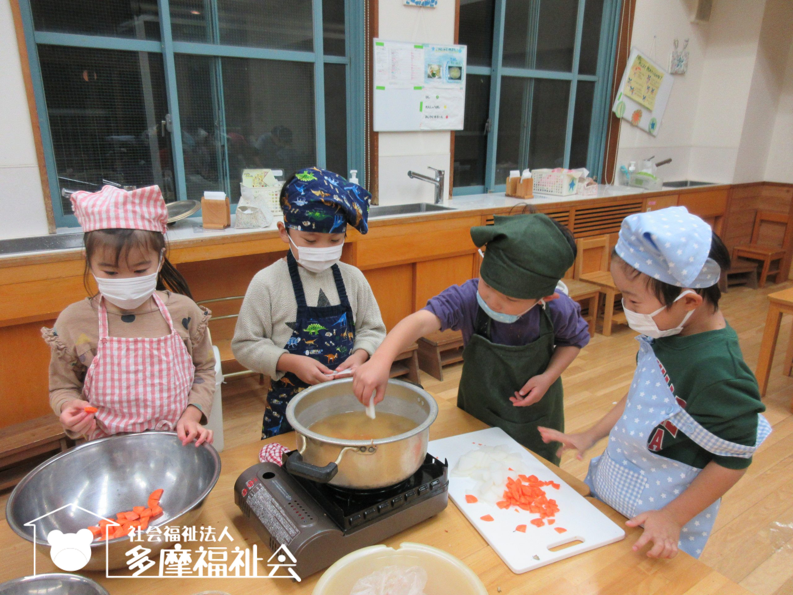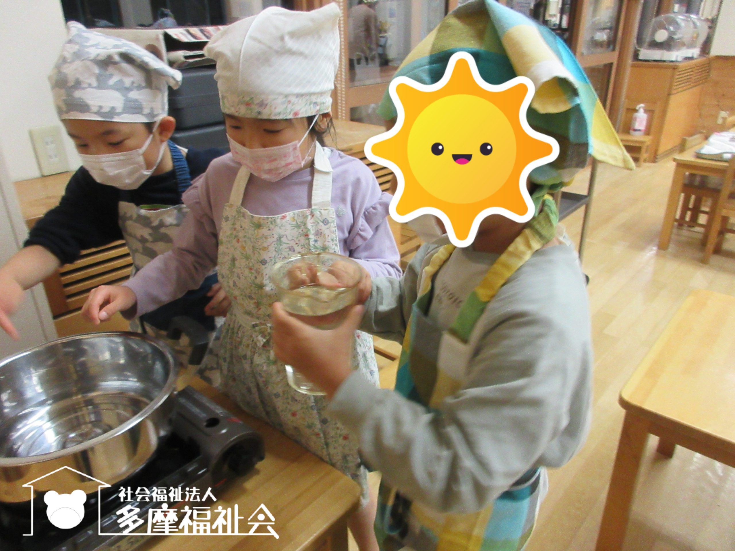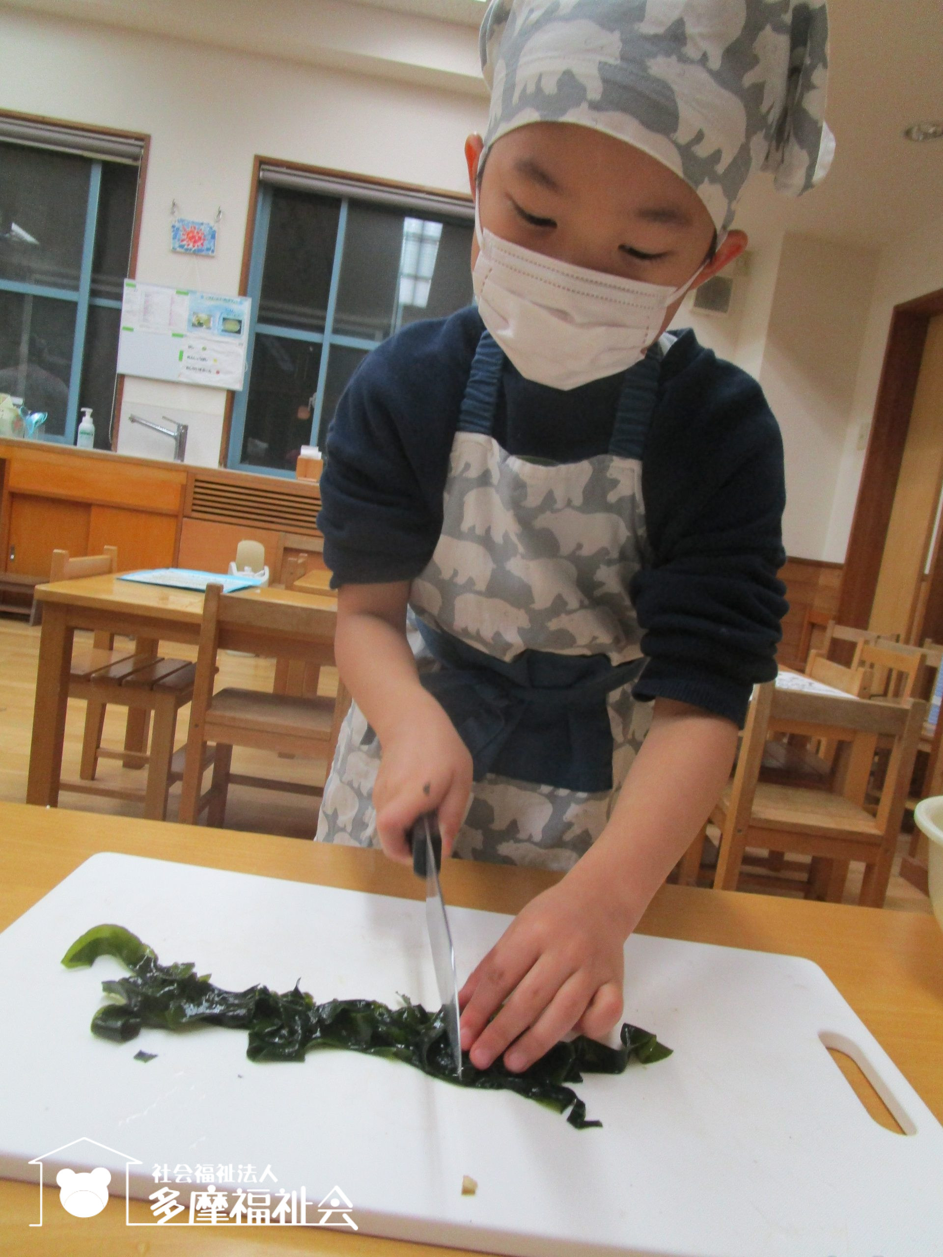 さぁ、クッキングです!!らいおんさんは味噌汁作りを担当します☆