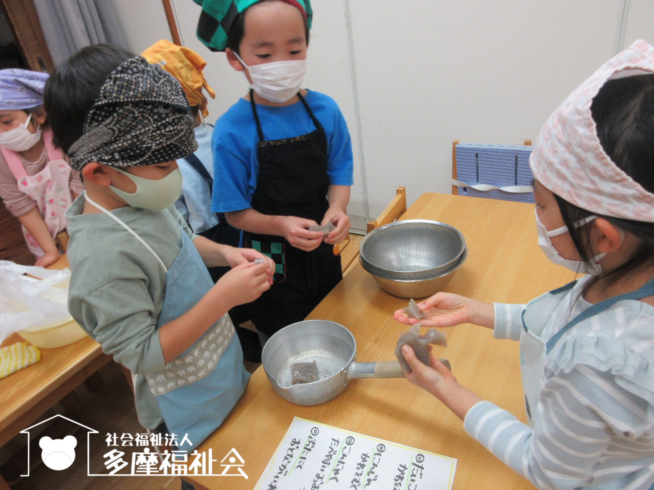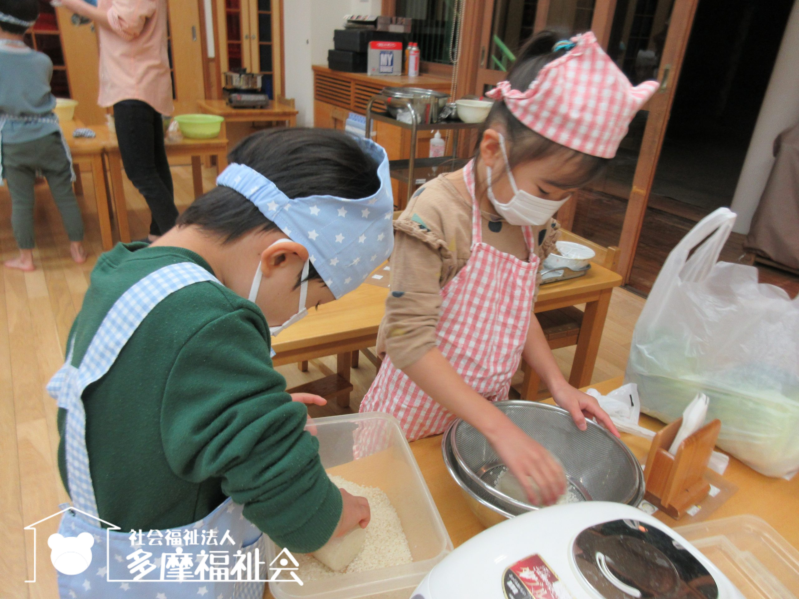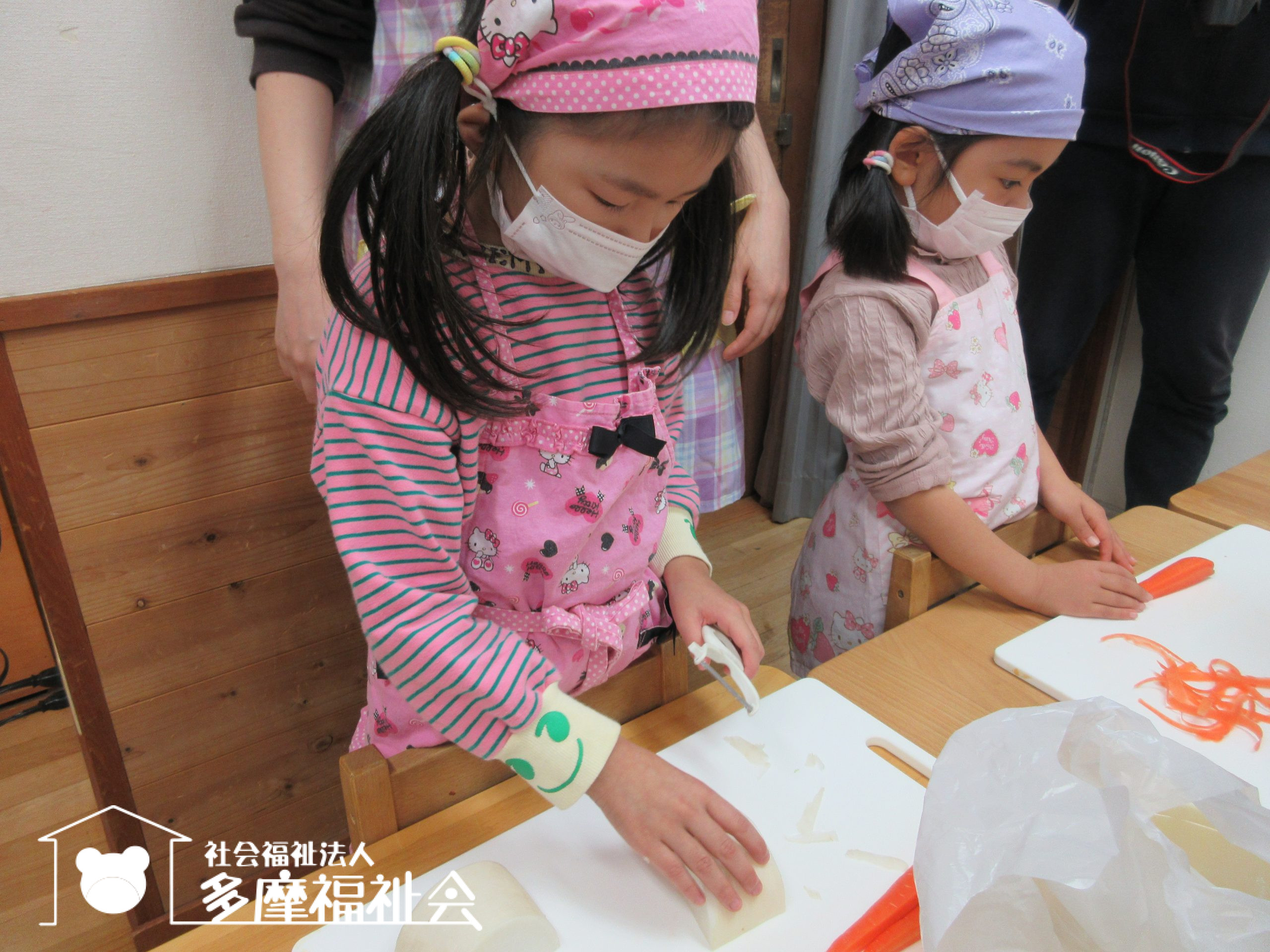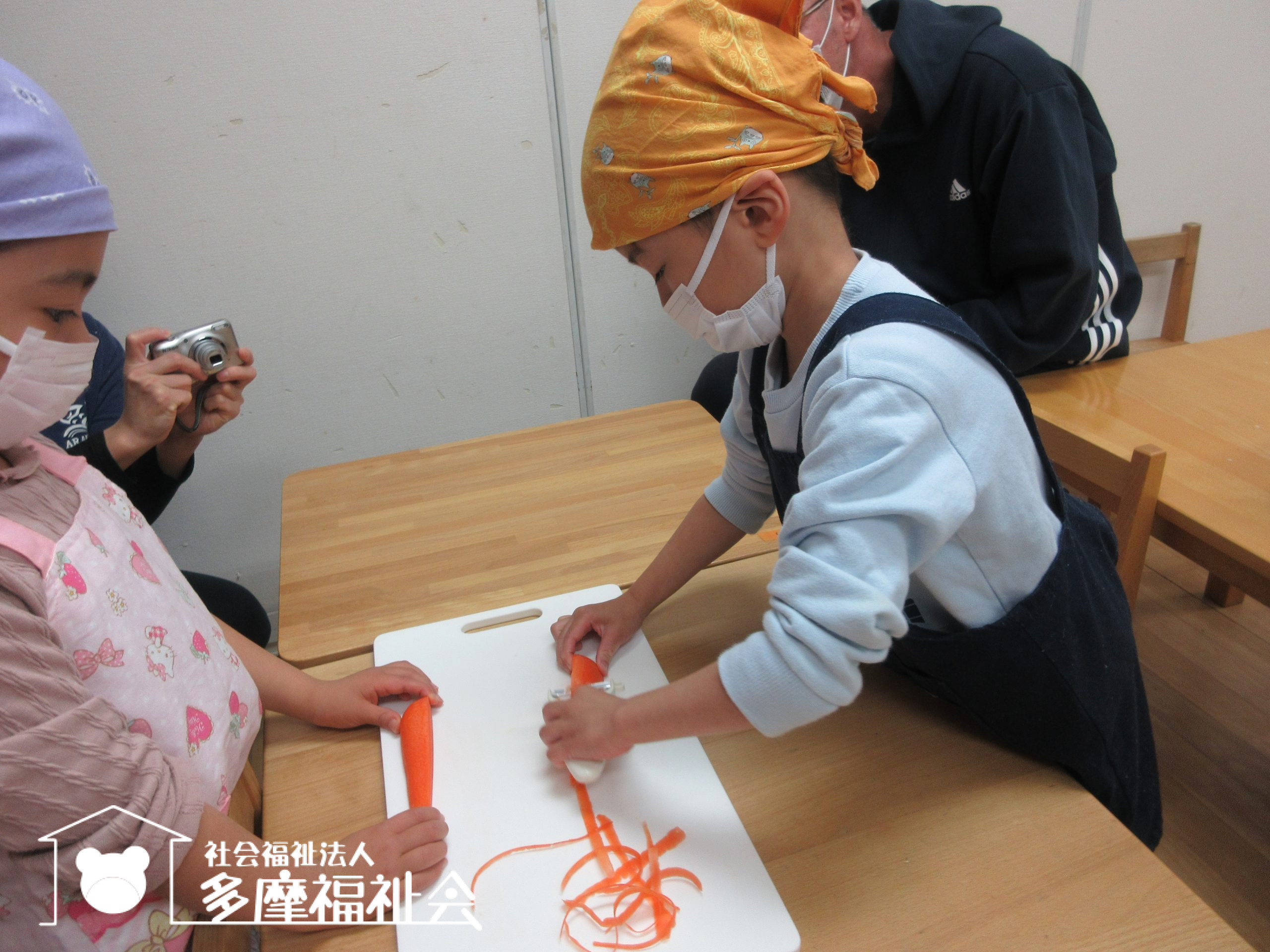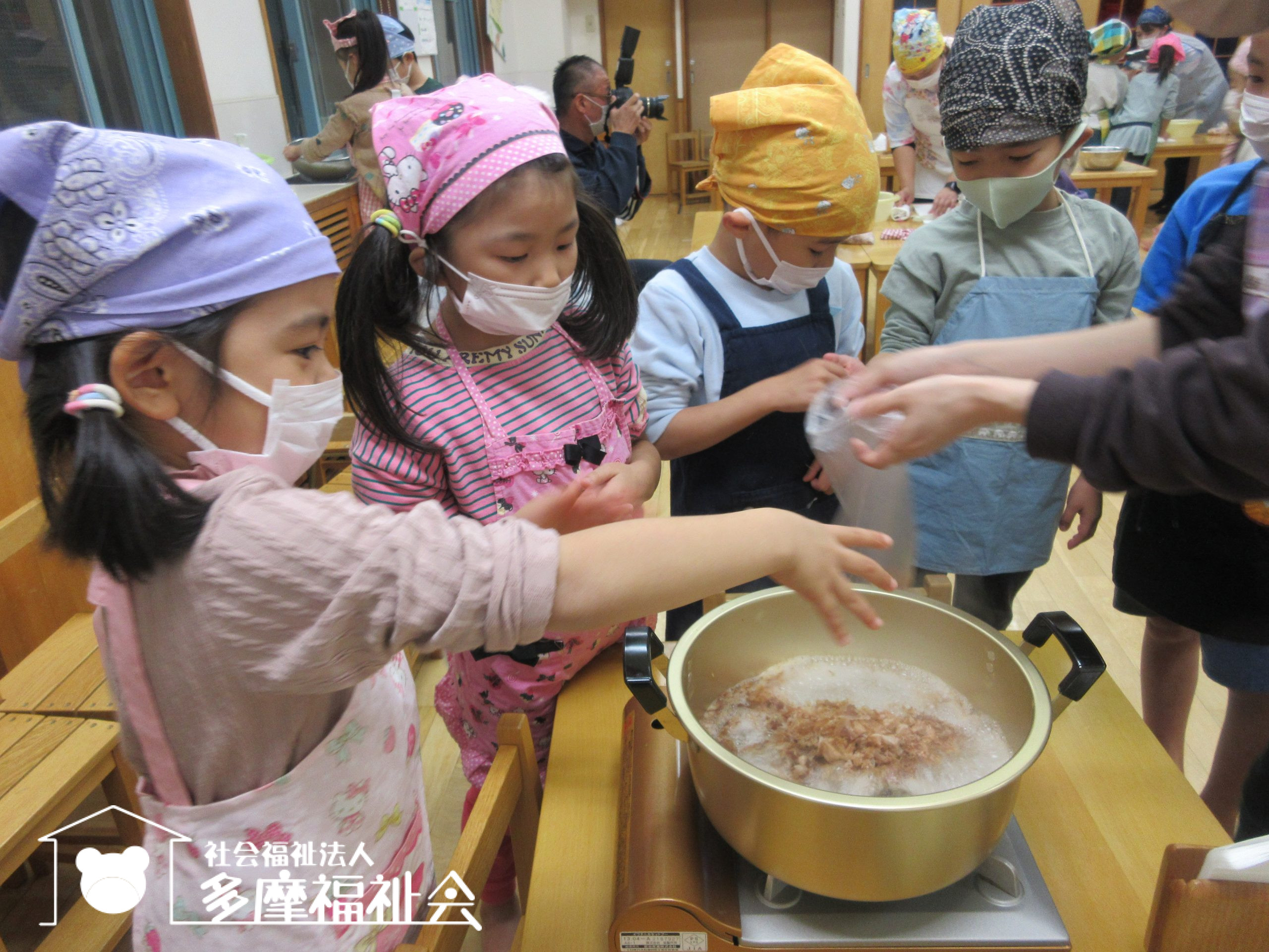 さぁ、クッキングです!!らいおんさんは味噌汁作りを担当します☆