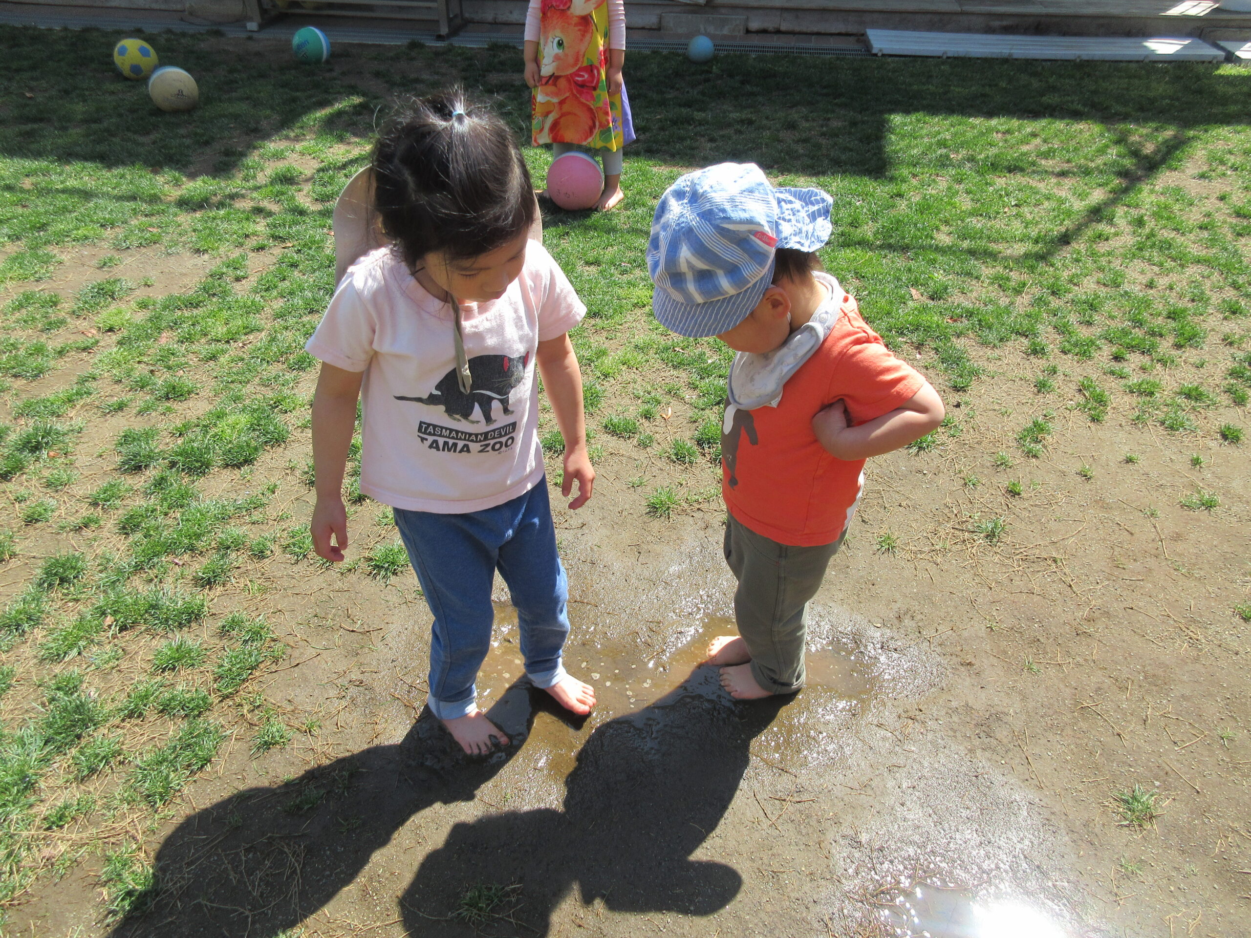 水たまりで遊んだり