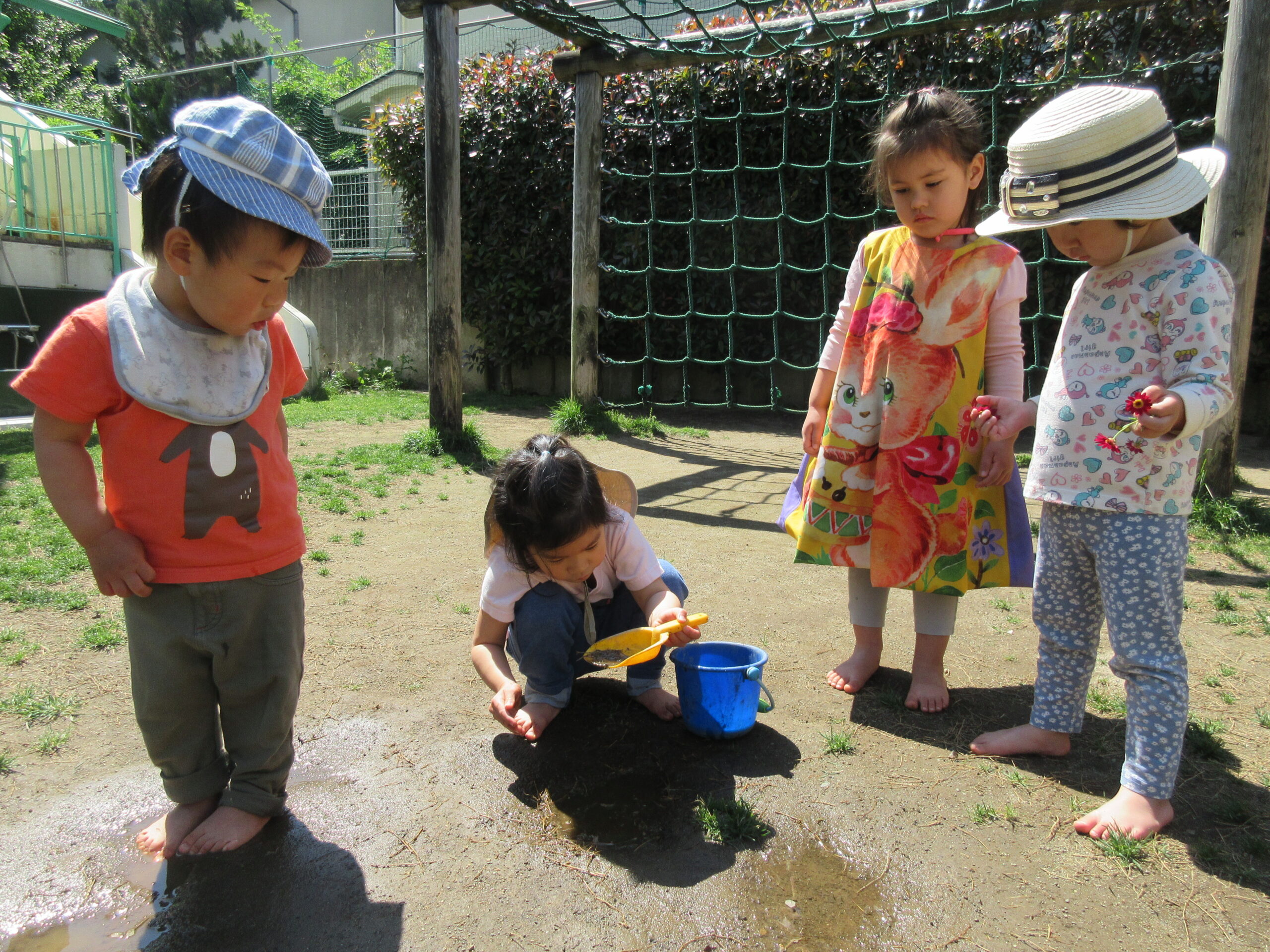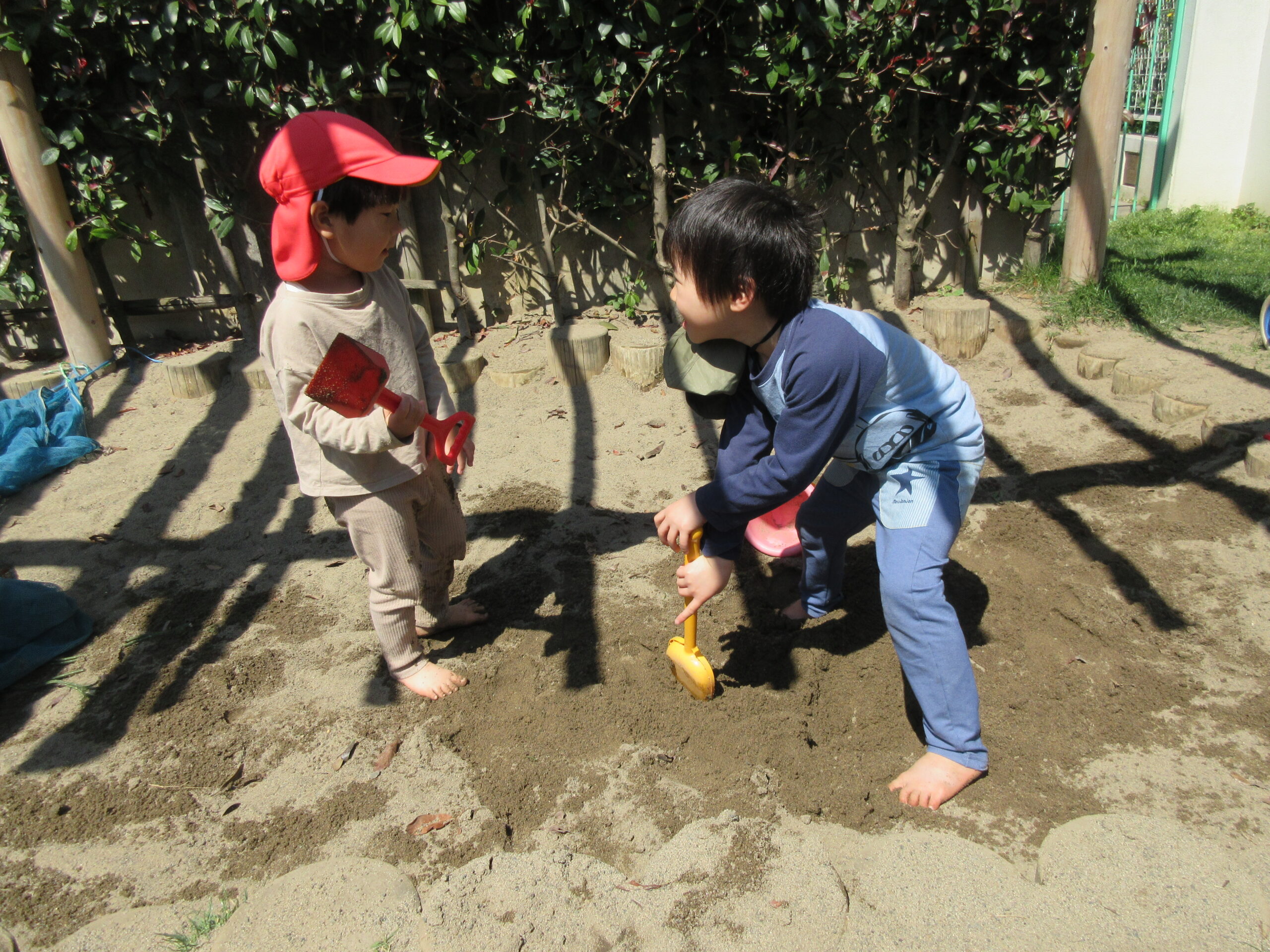 砂場で遊んだり