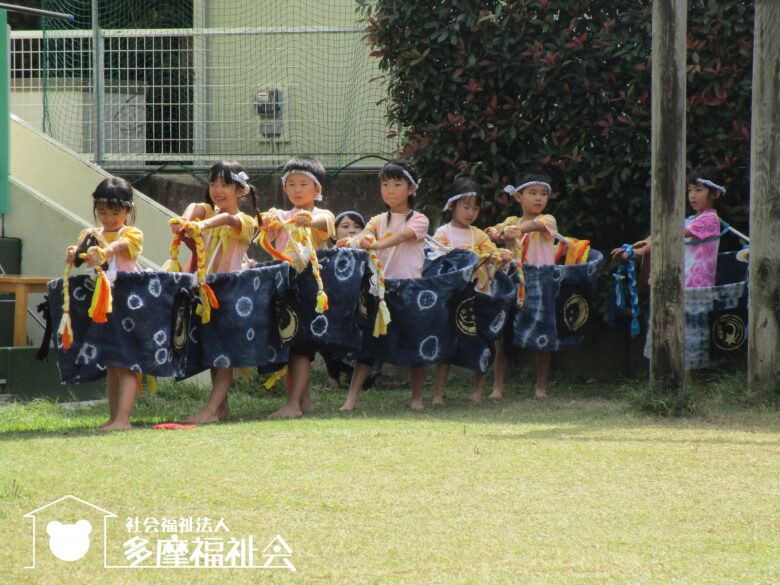 太鼓と笛の音色に合わせ、「やぁー」の掛け声も元気よく踊ります。