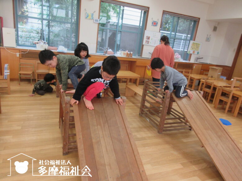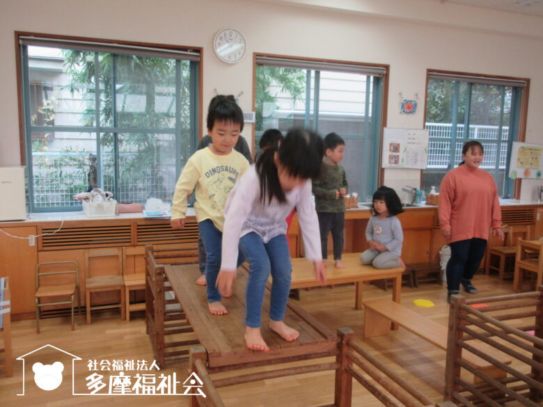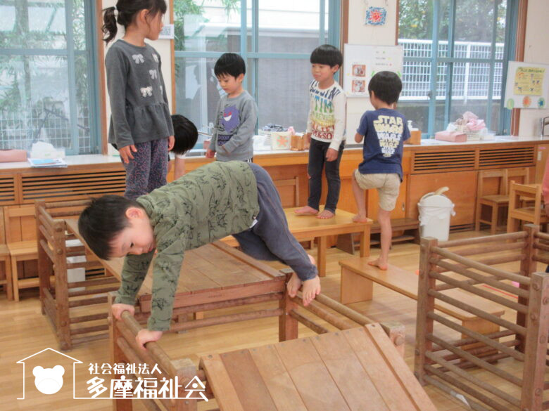 ろくぼくのコースではらんおんさん(5歳児)が渡っている姿に刺激を受けた