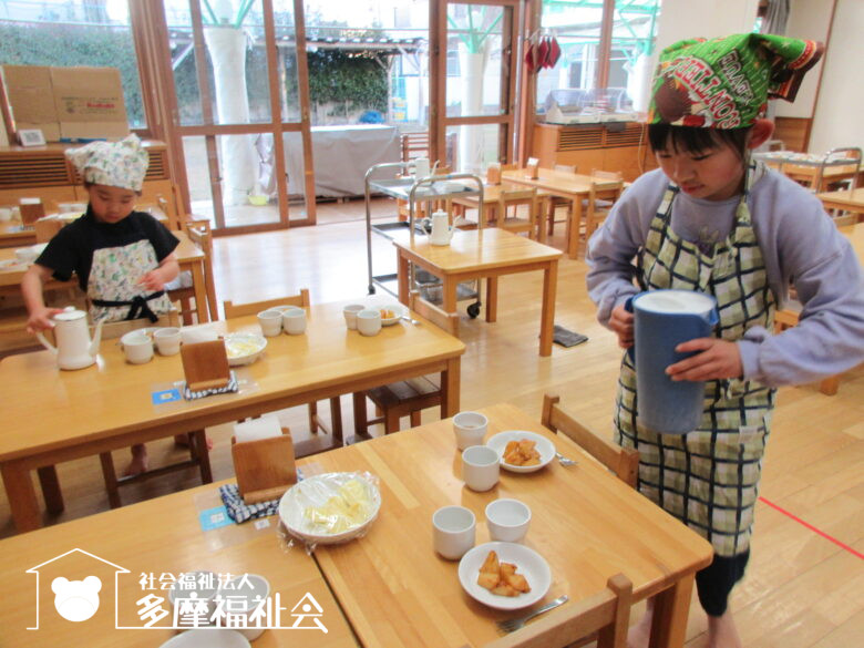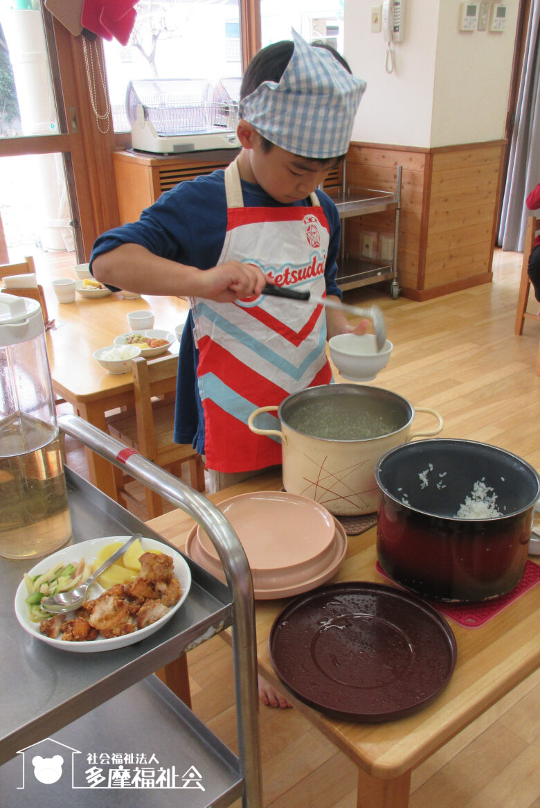 11時ごろになると「そろそろお昼ごはんだよね。やり方わかるしお当番やるよ」とたのもしい発言が。