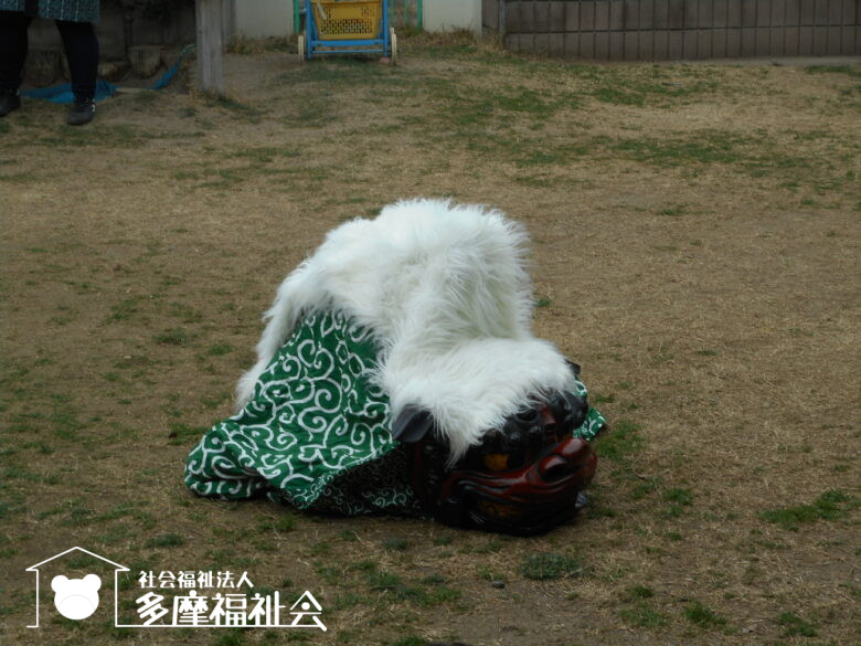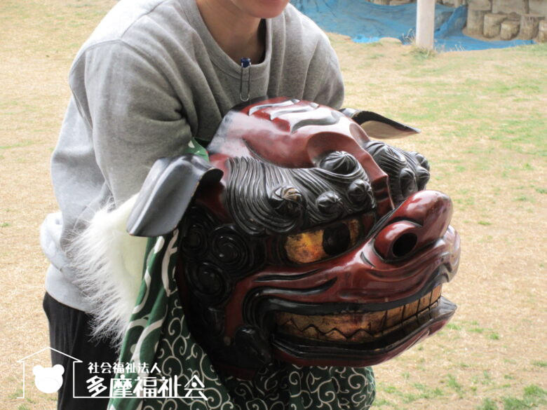 獅子舞は「人の頭を噛むことで、その人についた邪気を食べる」という言い伝えがあります。