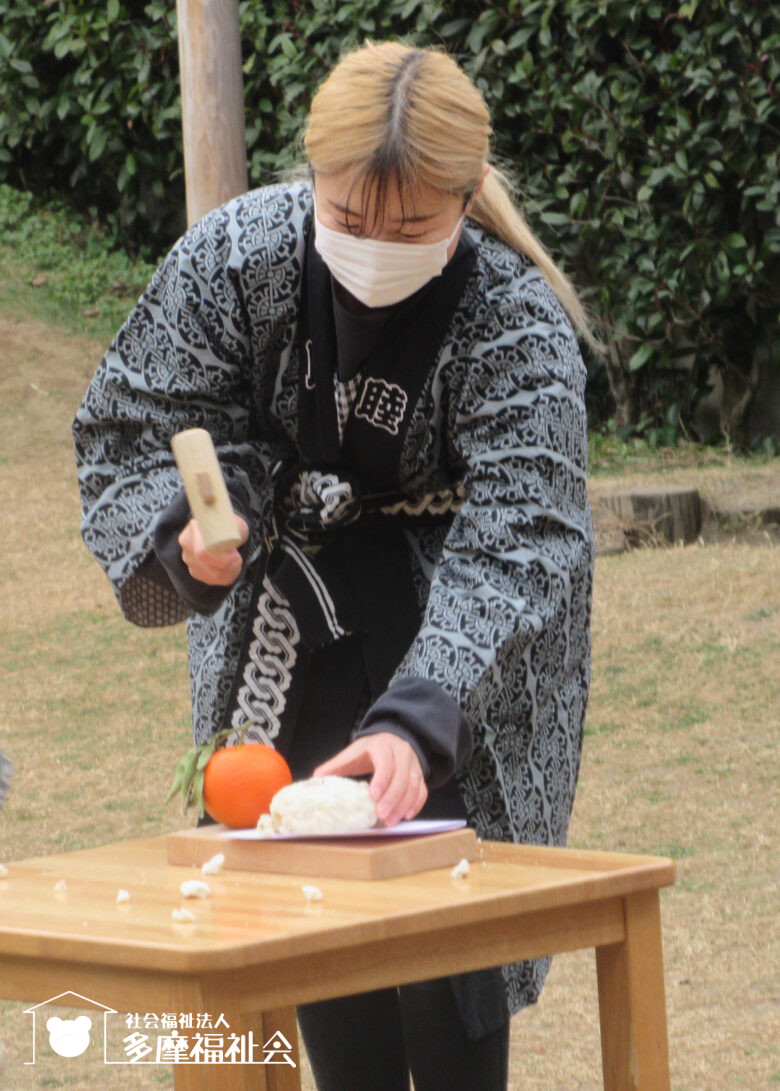 そのお話をしたあと、お正月にお供えした鏡餅を割りました。