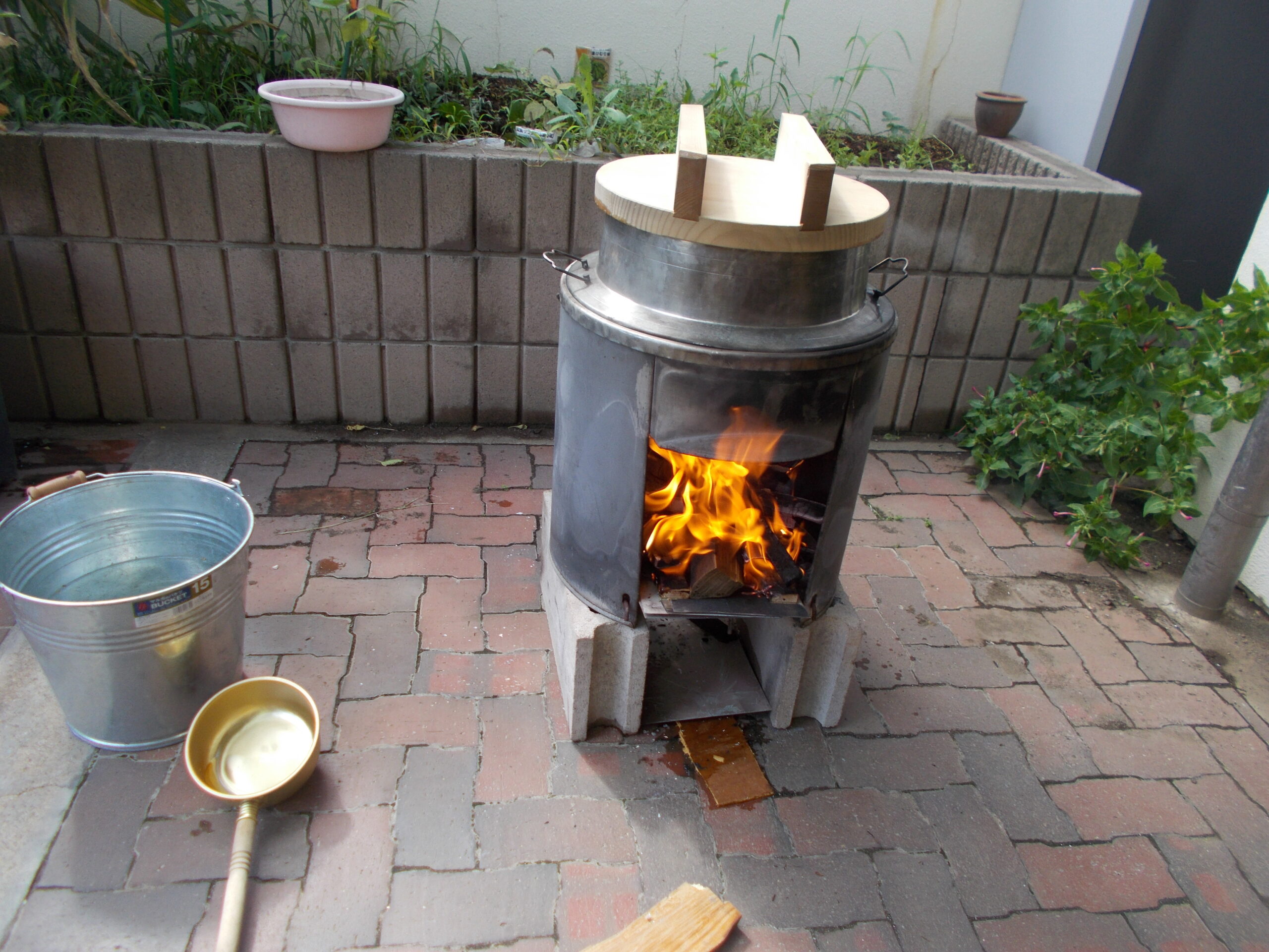 備蓄だけでなく、かまどを使って調理の練習をしています。