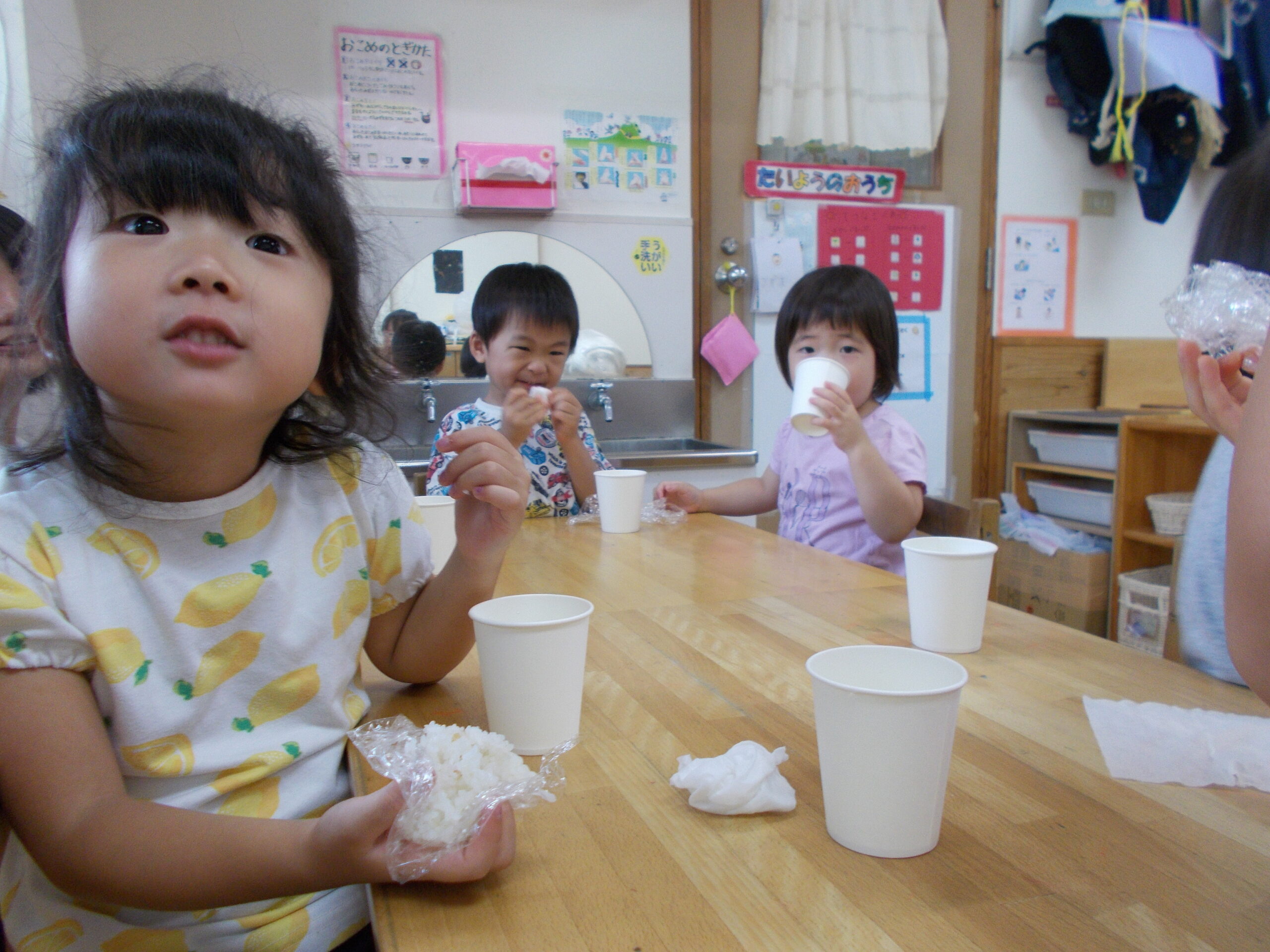 ラップおにぎりは乳児さんには難しい部分もありましたが