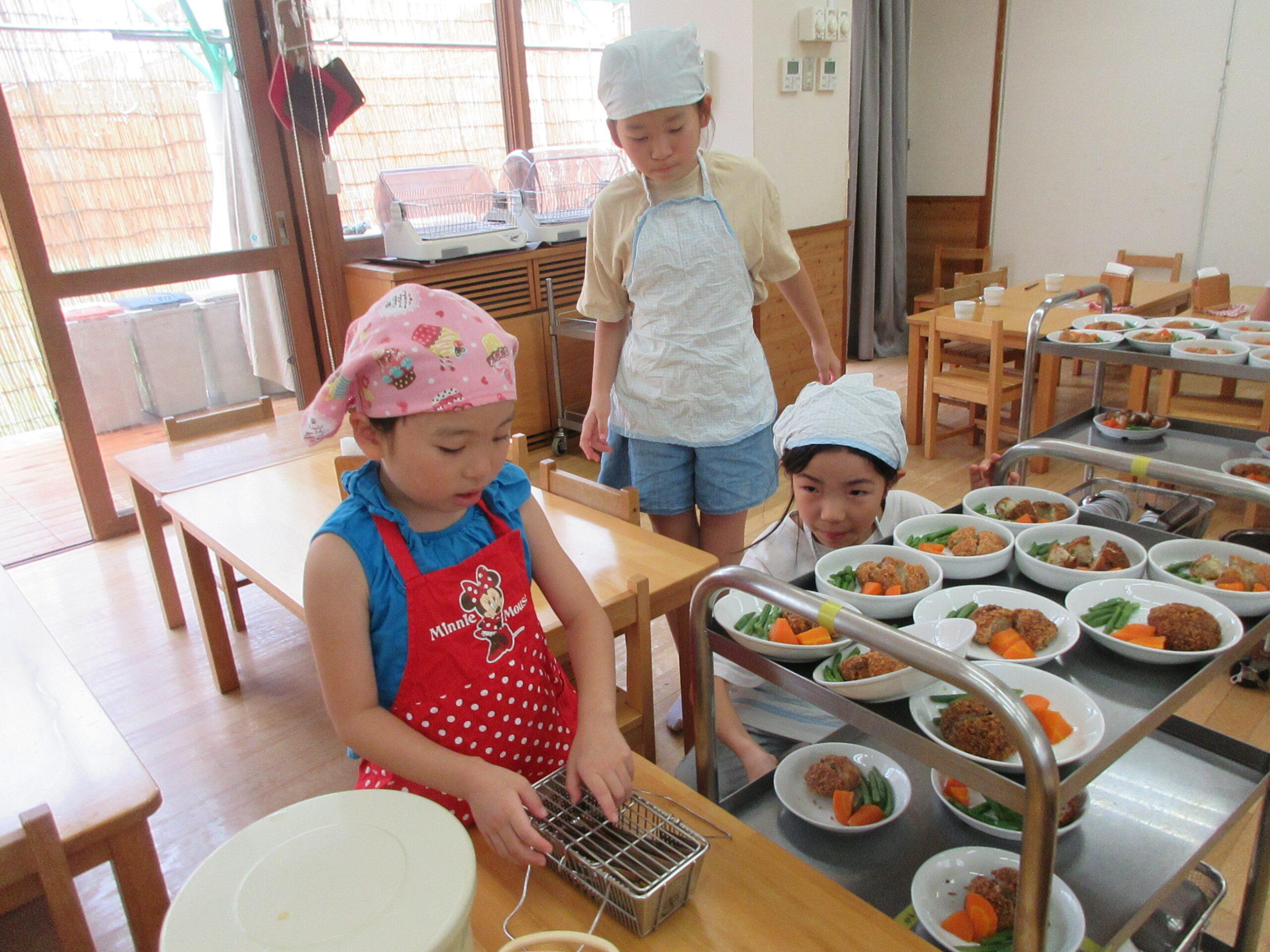 夏休みに小学生になった卒園生やお友だちなどが誘い合って 職場体験に来てくれました。