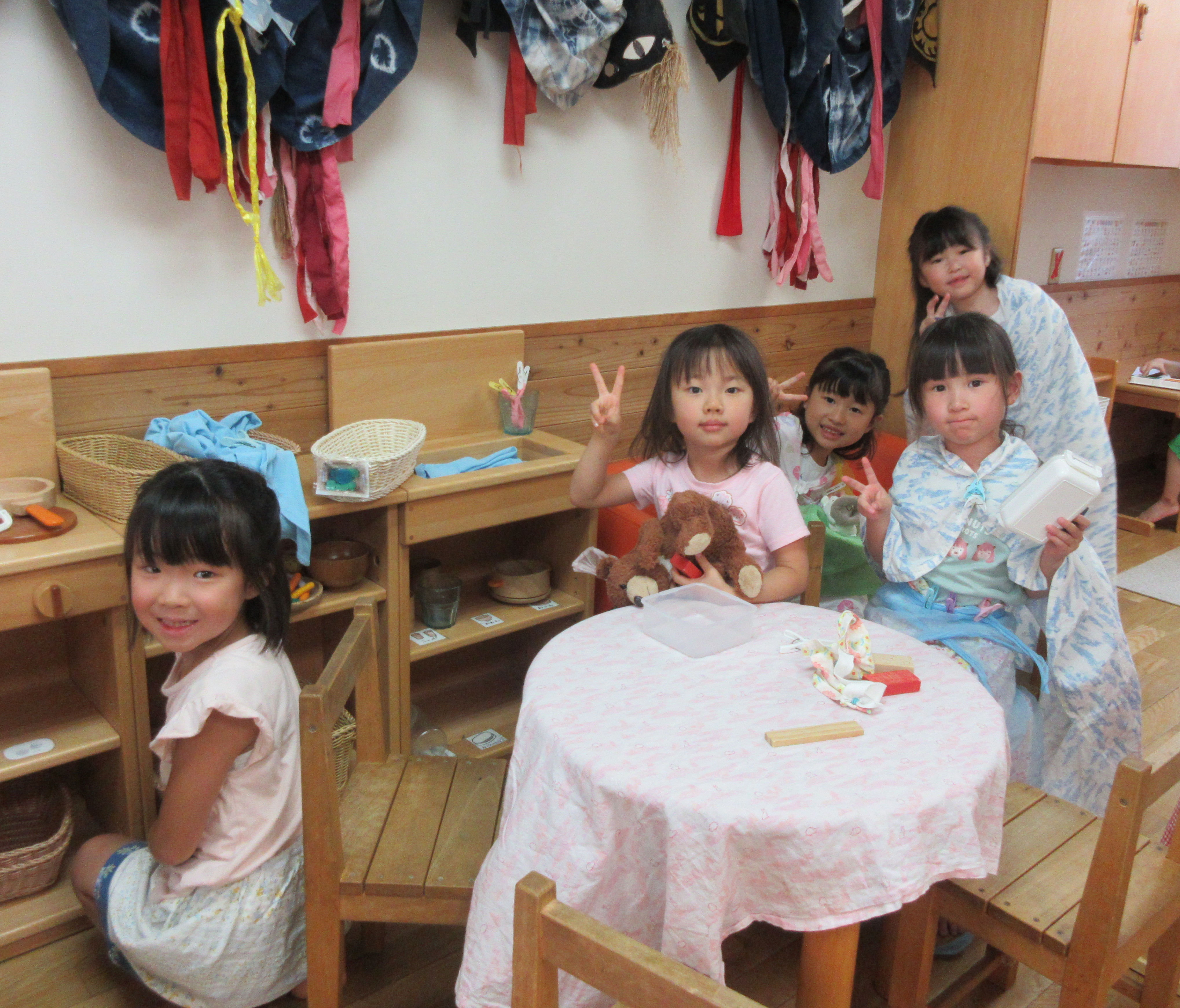 異年齢保育なので、卒園しても知っている年下の子がいることが 卒園生にとっては嬉しいことのようです。 卒園生といえども、久しぶりの保育園に初めは緊張している様子でしたが 子どもたちと過ごしているうちに、だんだんと慣れてきたようでした。 自分のいたおうちで過ごしたり、小さい子のクラスに行きたいという子もいました。