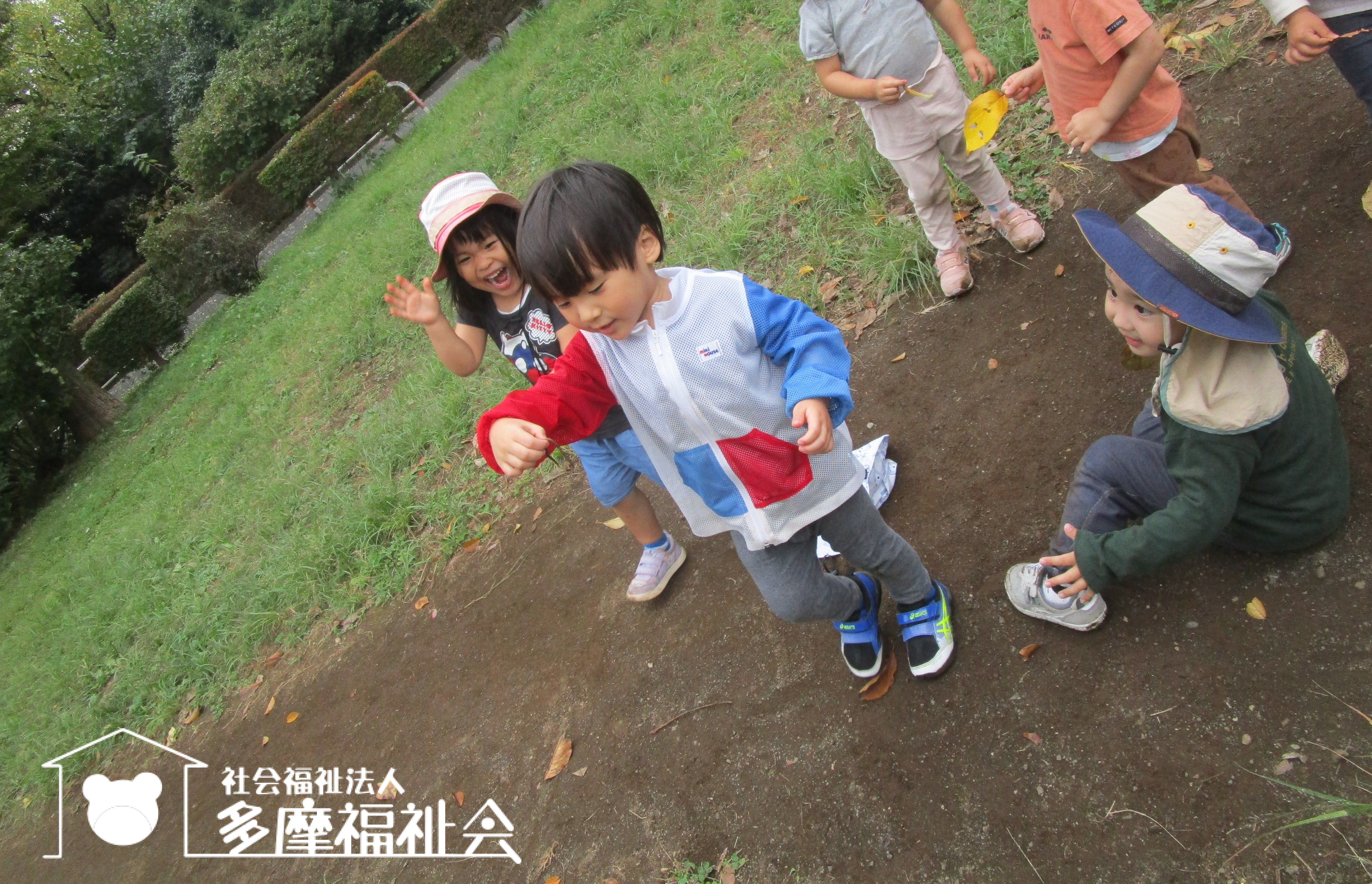 散歩先でミミズを見つけた子どもたち