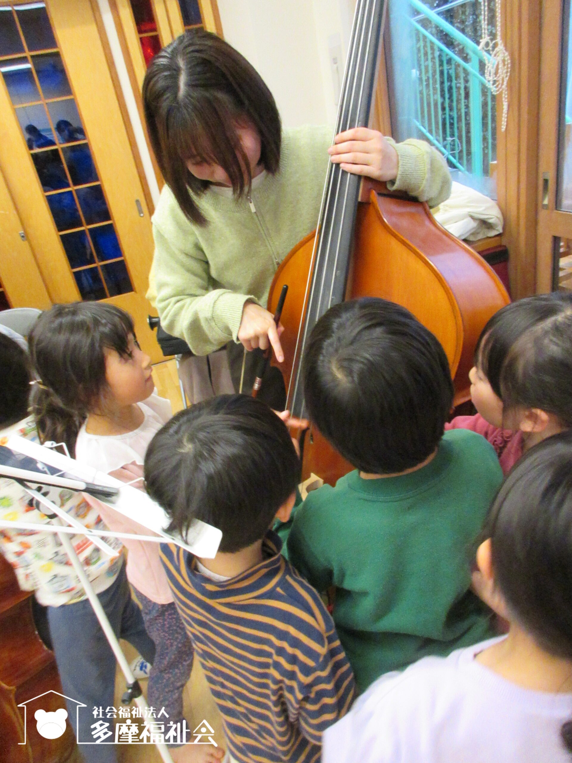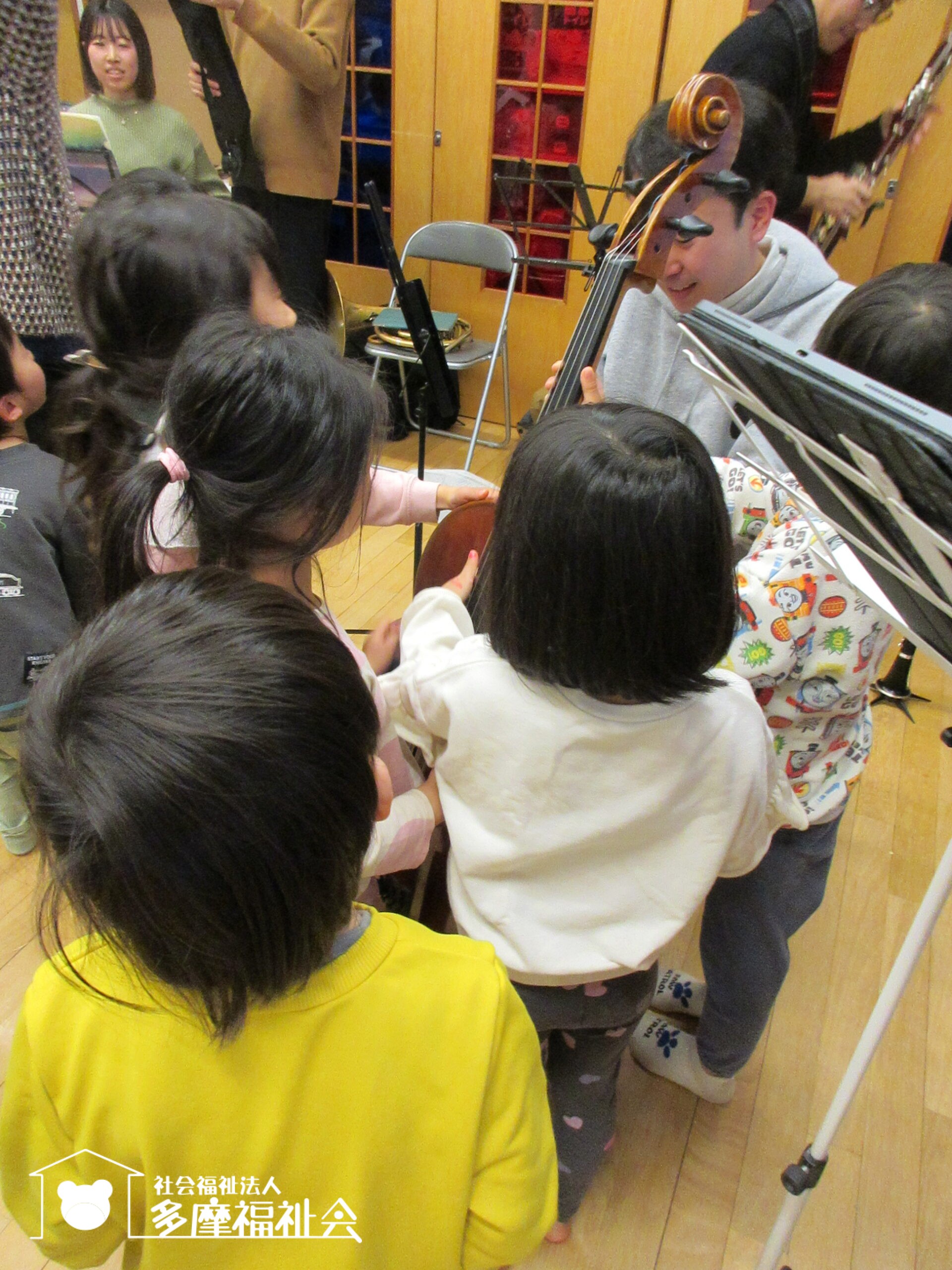 子どもたちと触れ合いながら、楽器の紹介もしてくれました