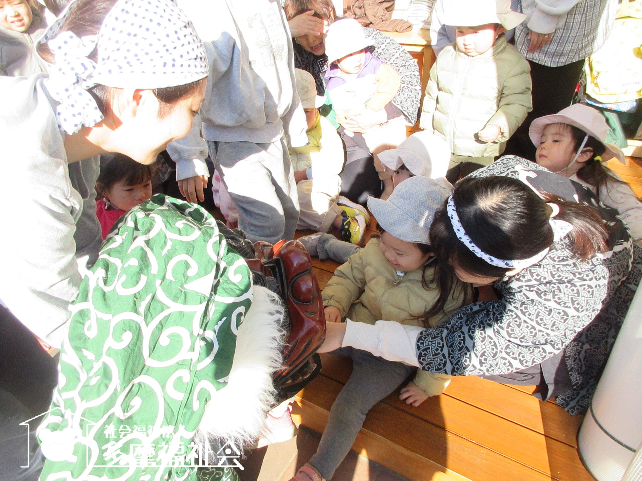 なんとなく朝から「獅子舞、どこからくるの?」とドキドキ・ソワソワしながらも、真剣な表情で獅子舞を見ていました