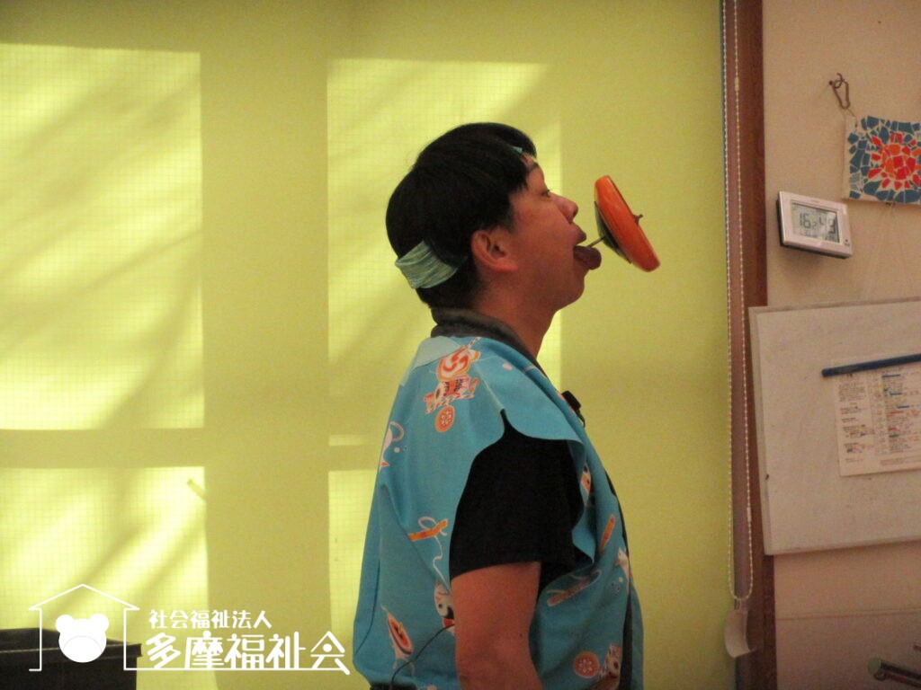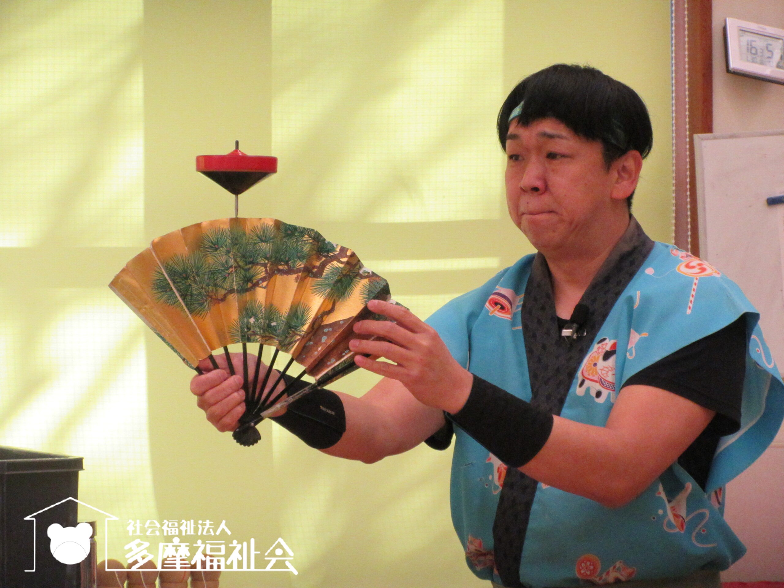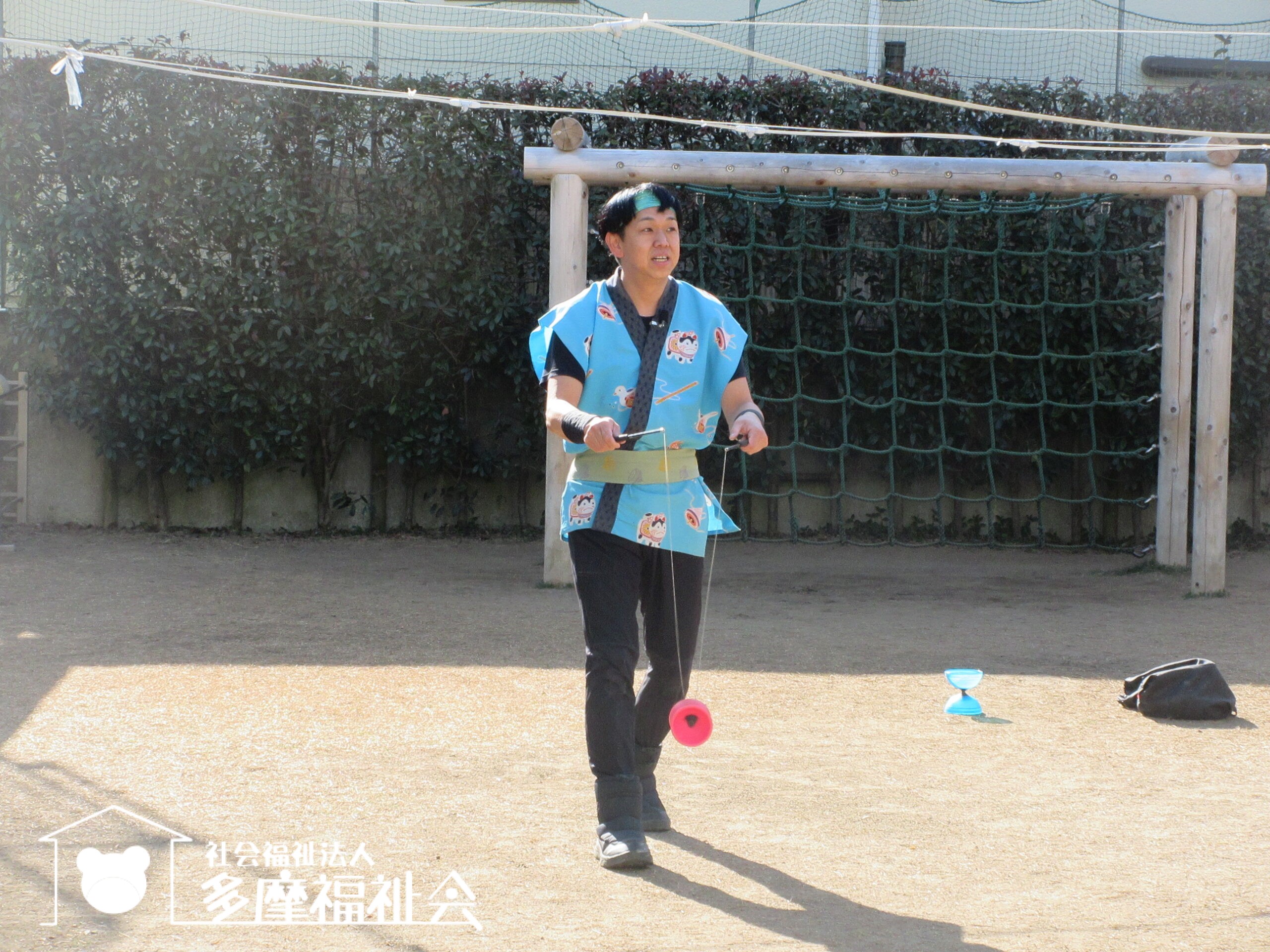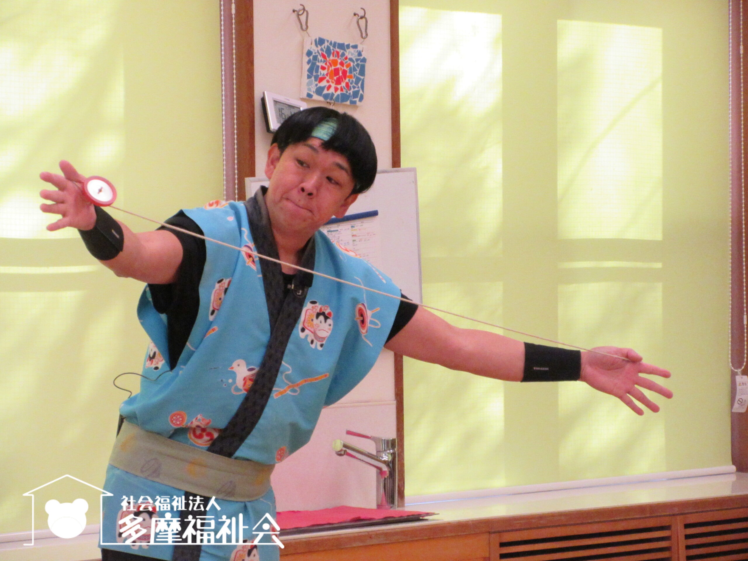 子どもたちと一緒にコマやけん玉のパフォーマンスを楽しみました。