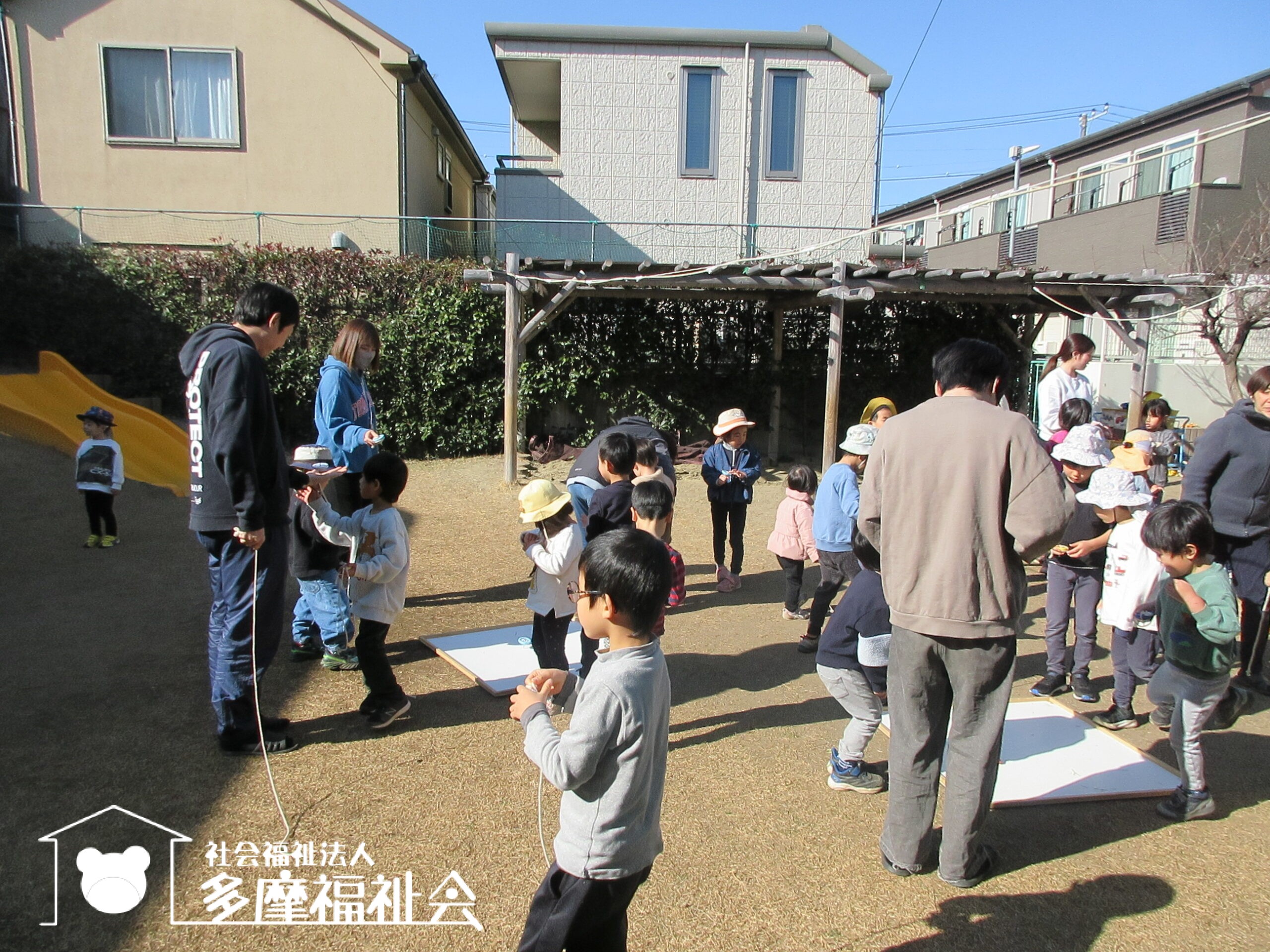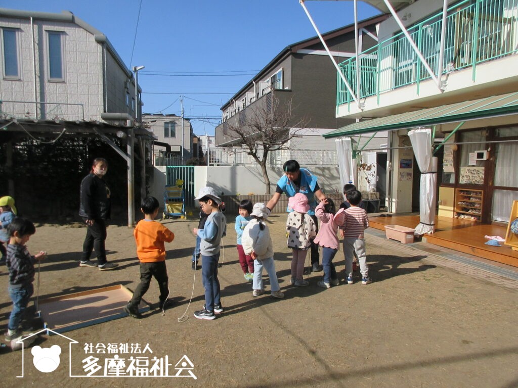 同法人の学童保育の4人の先生も見に来てくれ、公演後は、園庭でいっしょに遊んでくれました。