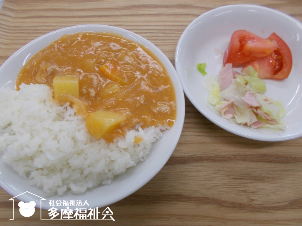 <昼食・幼児>ハヤシライス キャベツとハムのサラダ トマト 牛乳