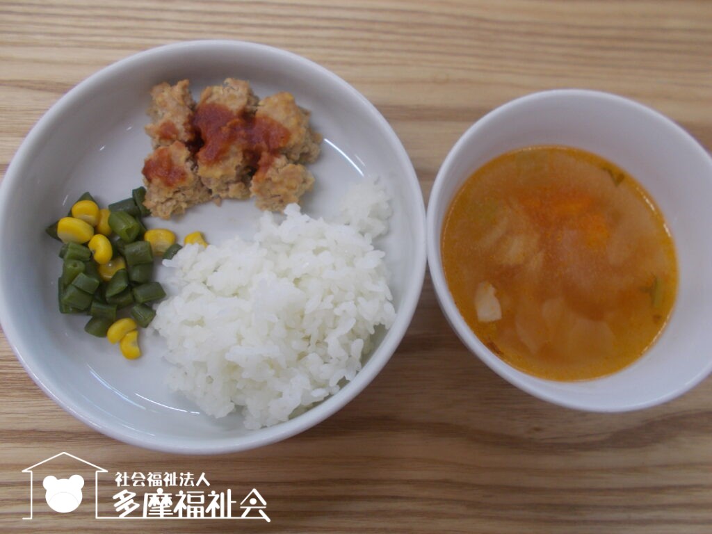 <昼食・乳児>ご飯 ミネストローネスープ ミートローフ いんげんとコーンのソテー