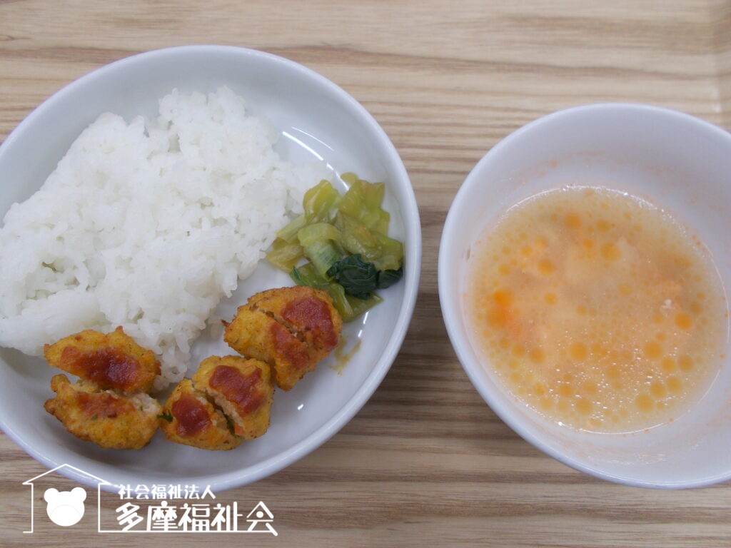 <昼食・乳児>ご飯 三平汁 豆腐ナゲット チンゲン菜のお浸し