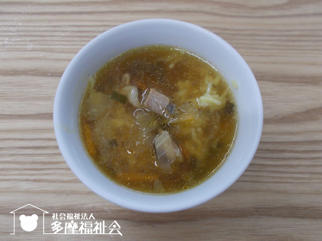 <昼食・乳児>カレーうどん さつまいもとりんごの重ね煮 小松菜のおかか和え(幼児:牛乳)