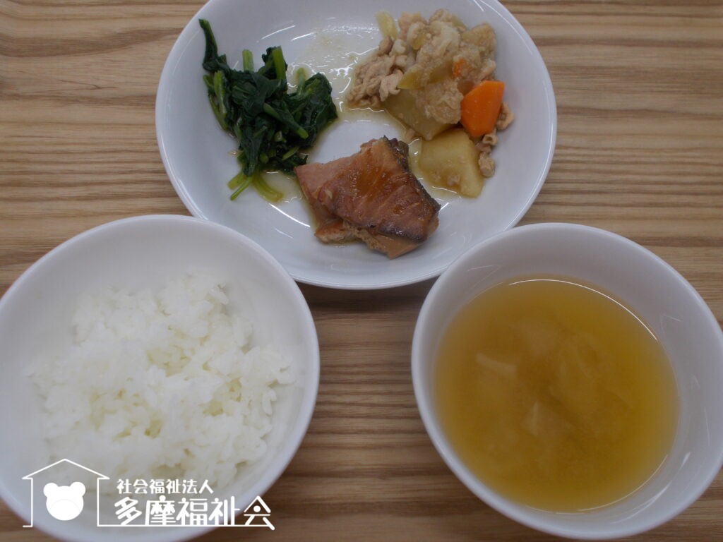 <昼食・幼児>御飯 味噌汁 ぶりの照り焼き 肉じゃが ほうれん草のお浸し
