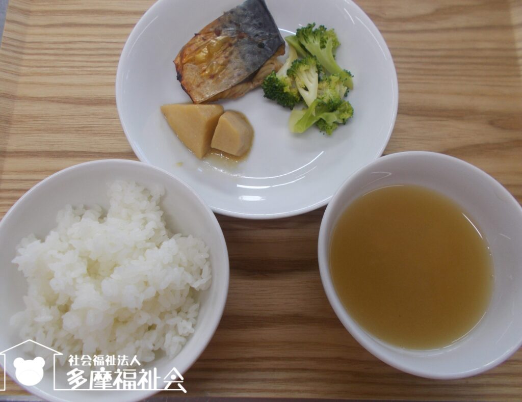 <昼食・幼児>ご飯 味噌汁 鯖の照り焼き 里芋の煮ころがし ブロッコリーのお浸し